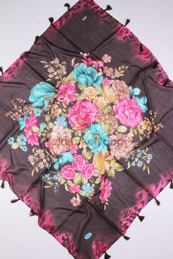 KENARLARI SAÇAK PÜSKÜLLÜ YAZMA, 95x95 cm EBATINDA
