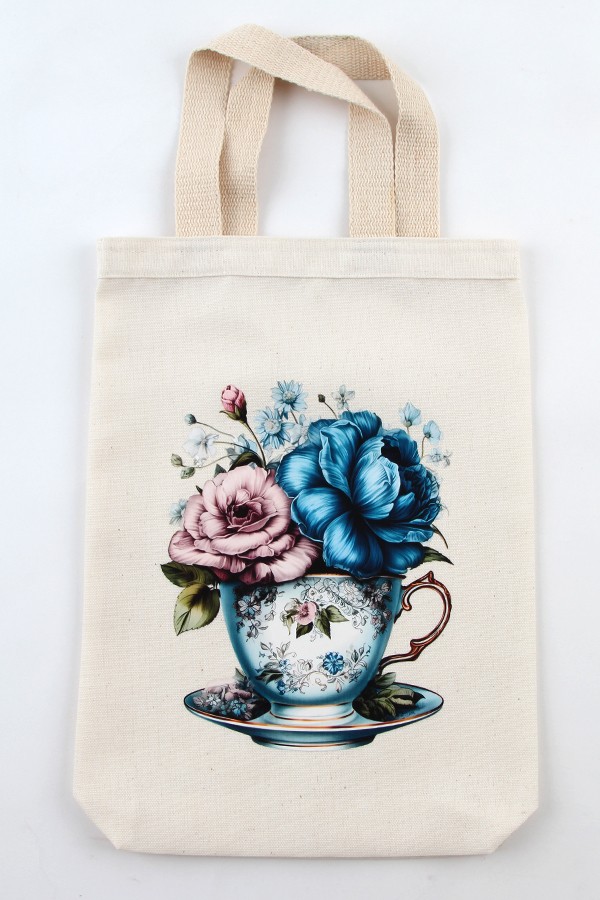 FİNCAN DESENLİ BASKILI HAM BEZ ÇANTA