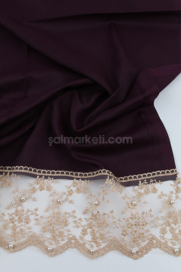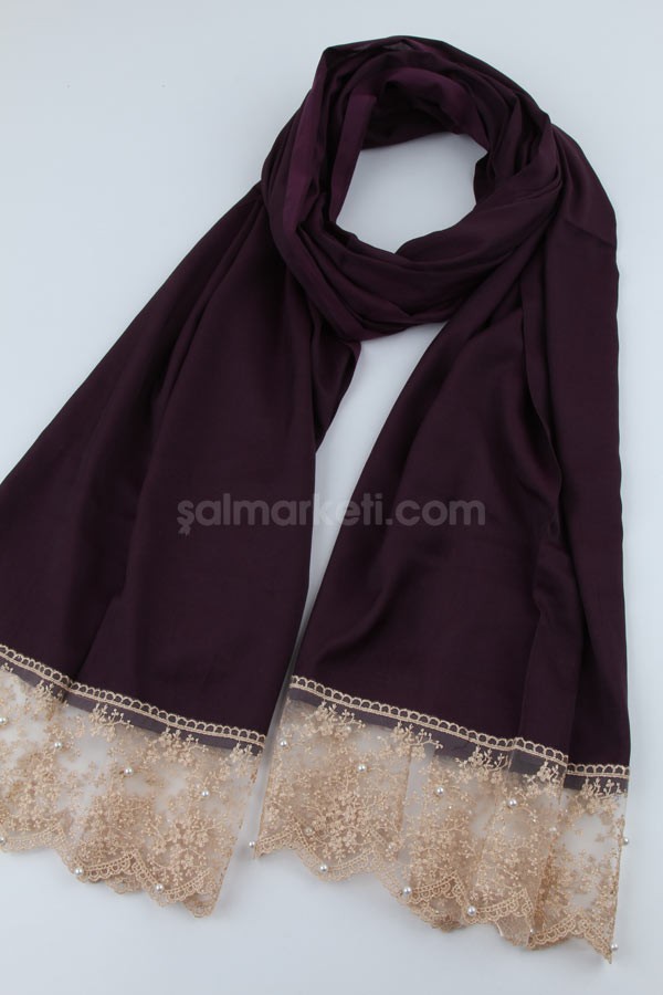 İPEKSİ GÖRÜNÜMLÜ İNCİ DANTELLİ ŞAL