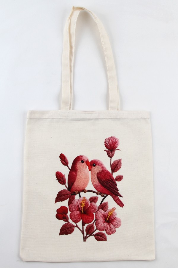 KUŞ DESENLİ BASKILI HAM BEZ ÇANTA